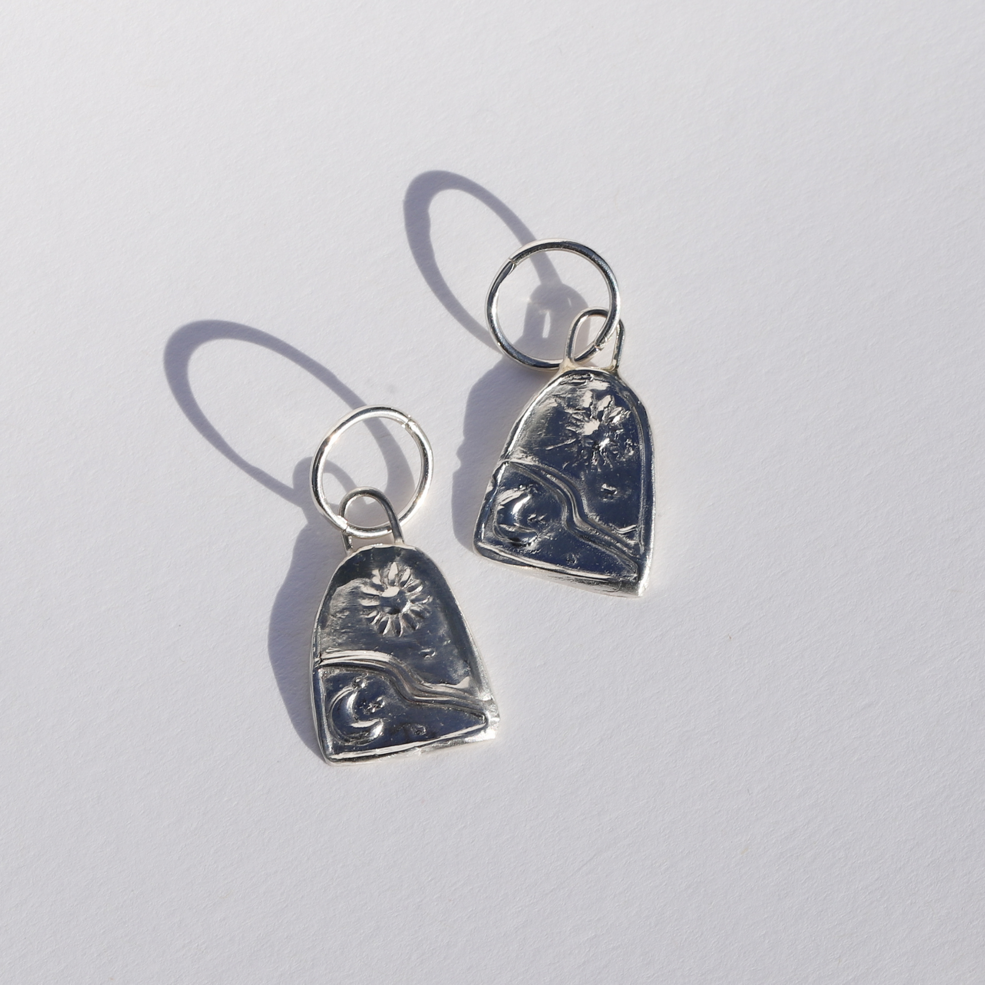 These hoop earrings feature one of a kind hand carved print of the "from planet earth" adventurer seal, created using the lost wax carving technique. These hoops are for the nature lovers, explorers, adventurers and wanderers of the earth - embodying the sun, moon, sky, waters and mountains. All the places life's adventures take place!
