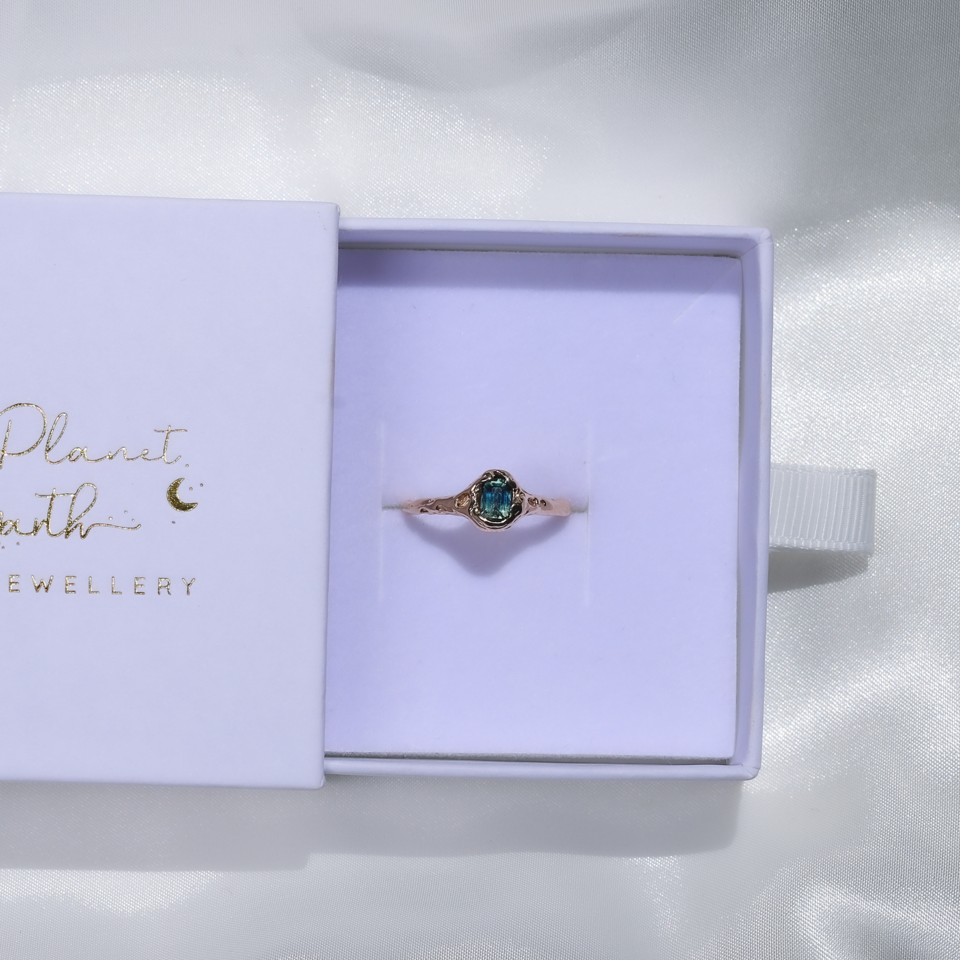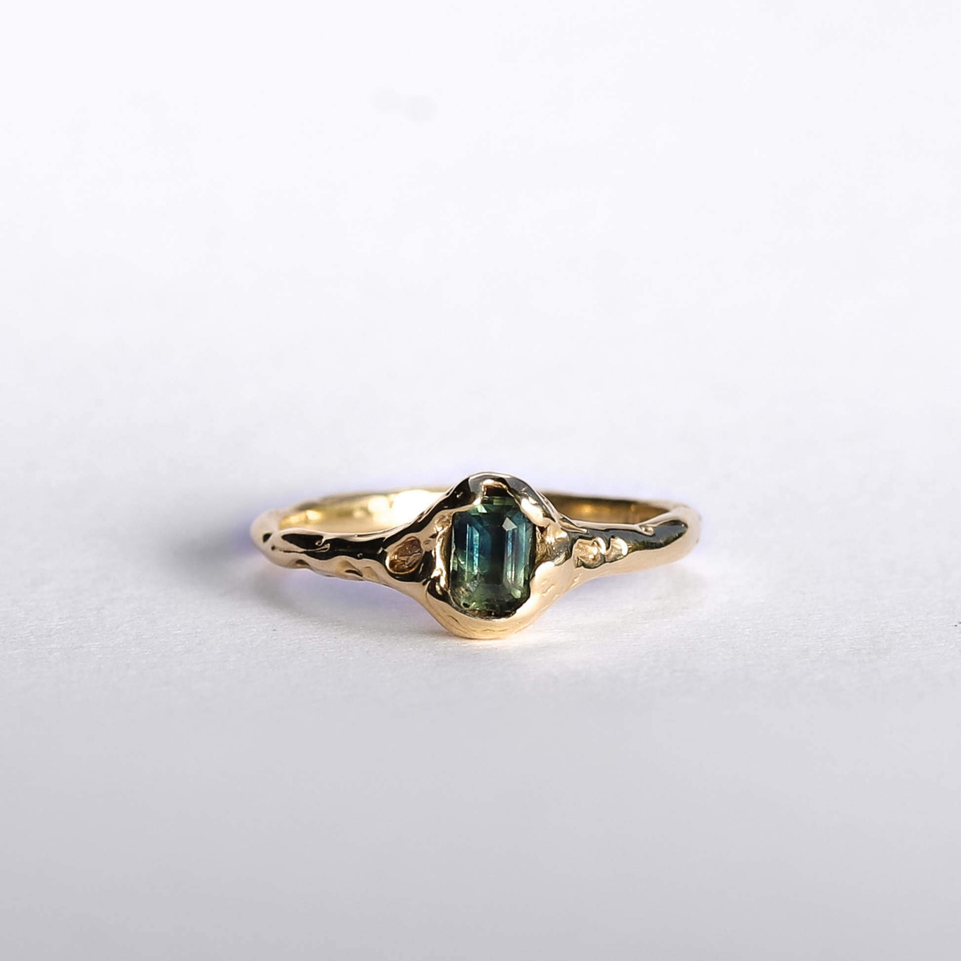 Ocean Green Sapphire Gold Ring (O/ US 7)