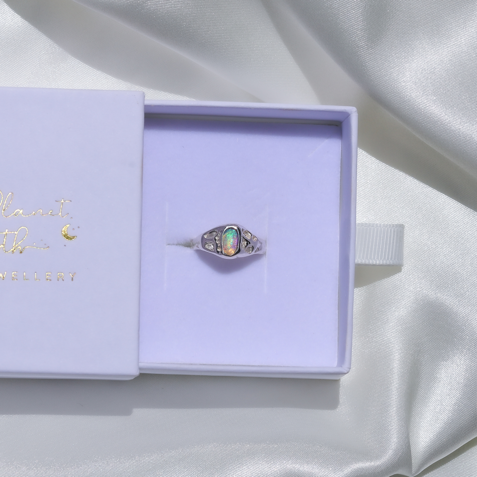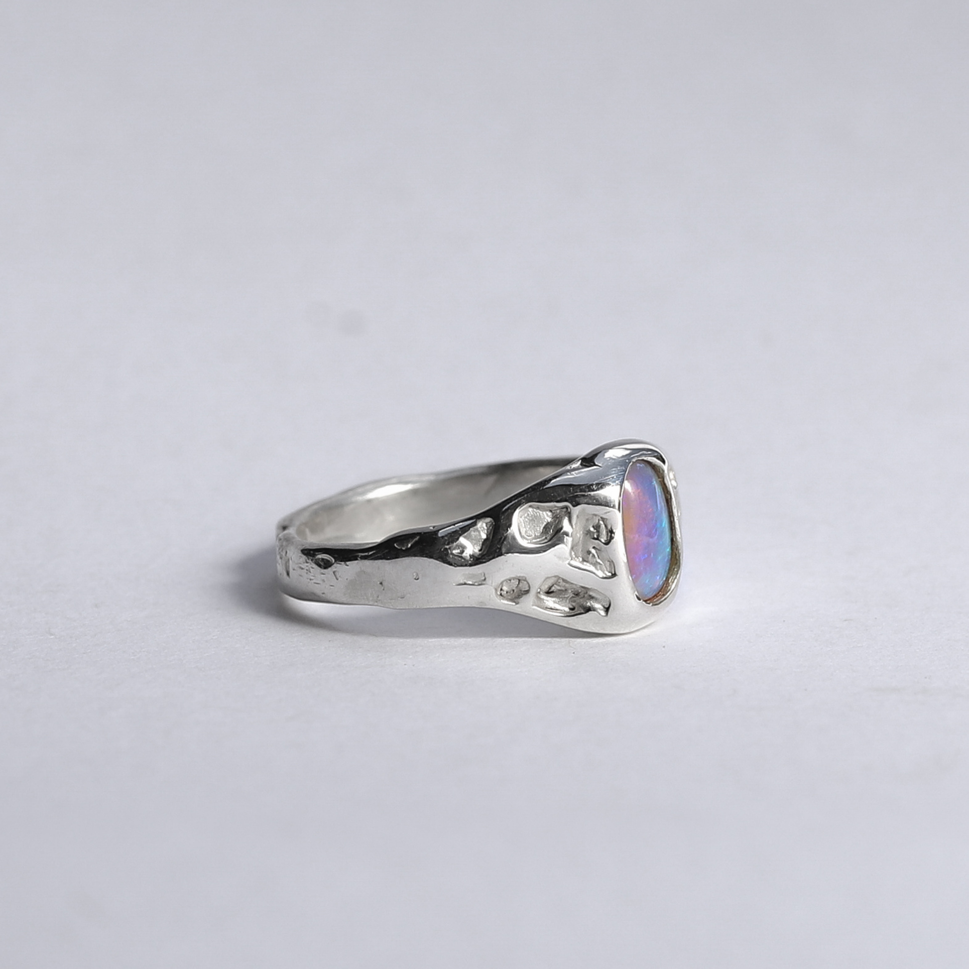 A unique organic silver ring in my 'Planet Jupiter' style with a one of a kind Australian Crystal Coober Pedy Opal.