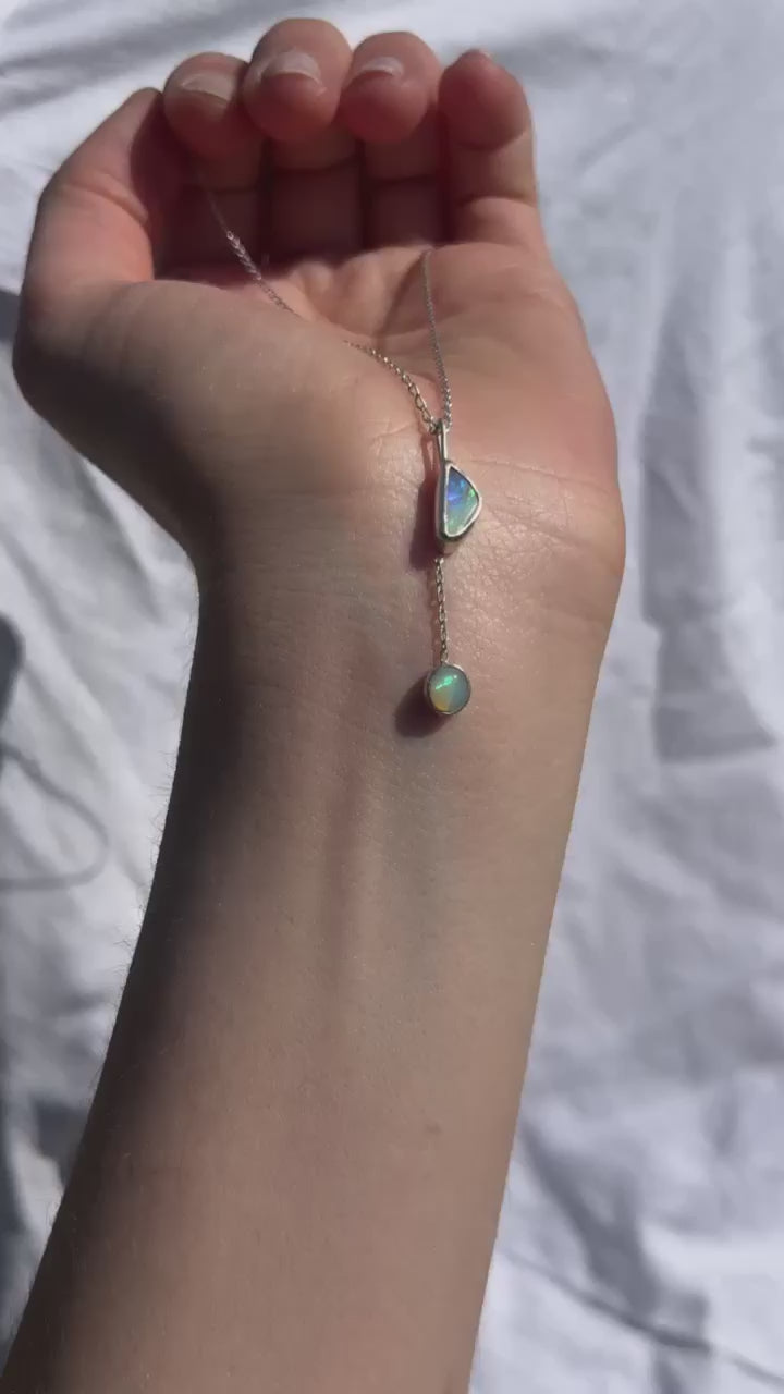 A delicate and otherworld pendant with two spectacular Australian opals.
