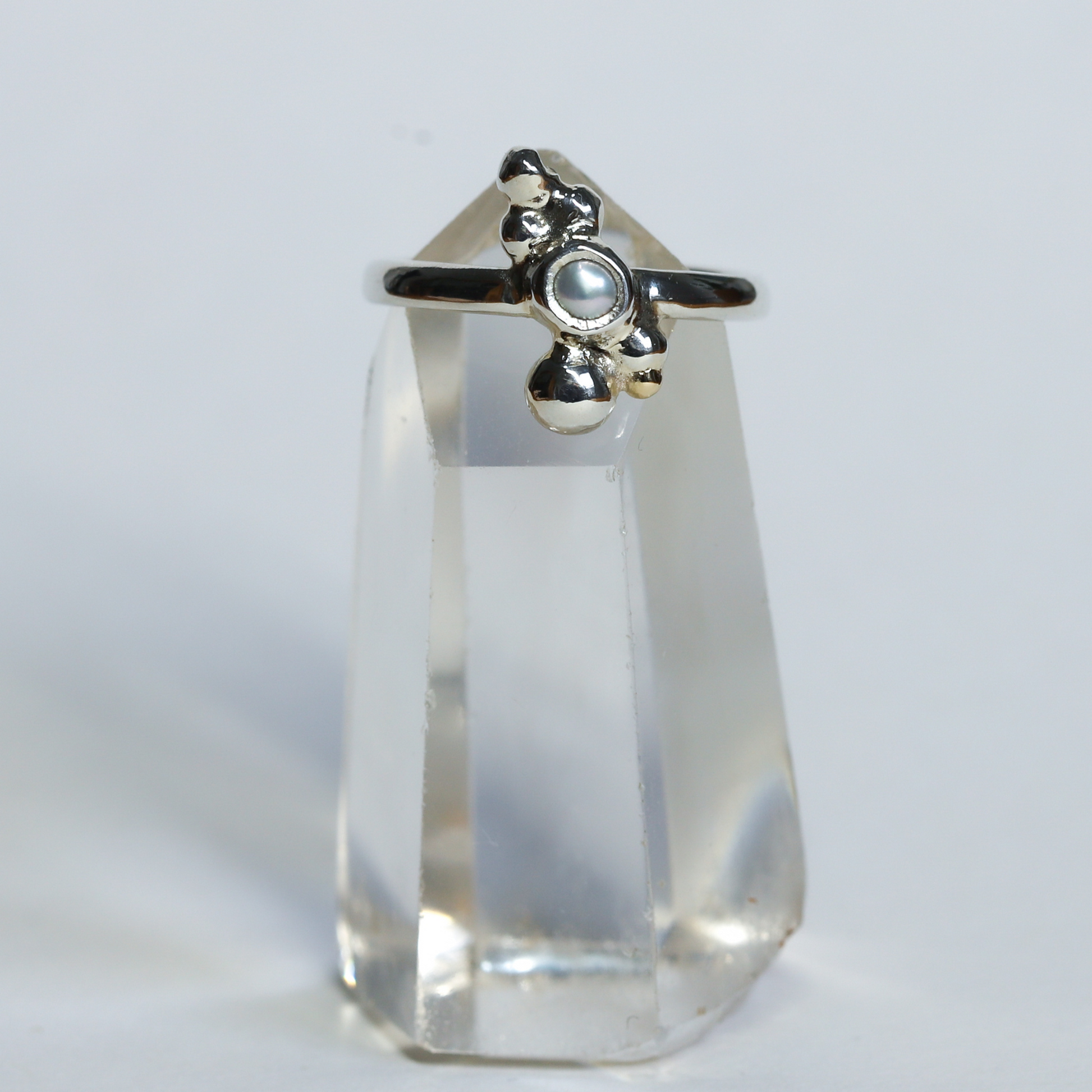 A unique seed pearl thing in a delicate 2mm sterling silver band and sterling silver bubbles with one 1.5mm gold nugget.