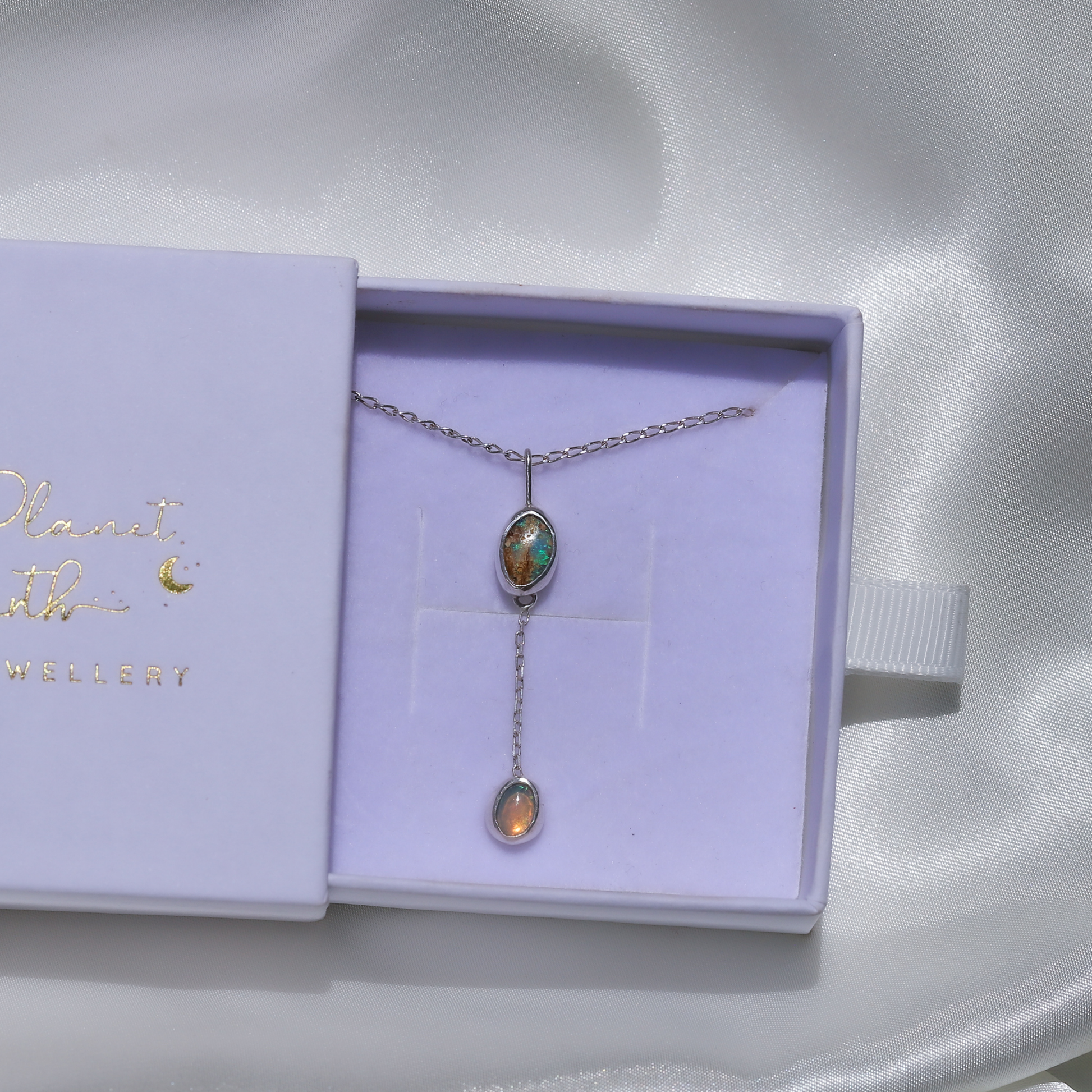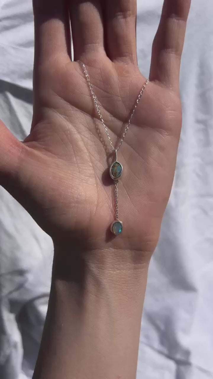 A delicate droplet-style pendant with two spectacular Australian opals.