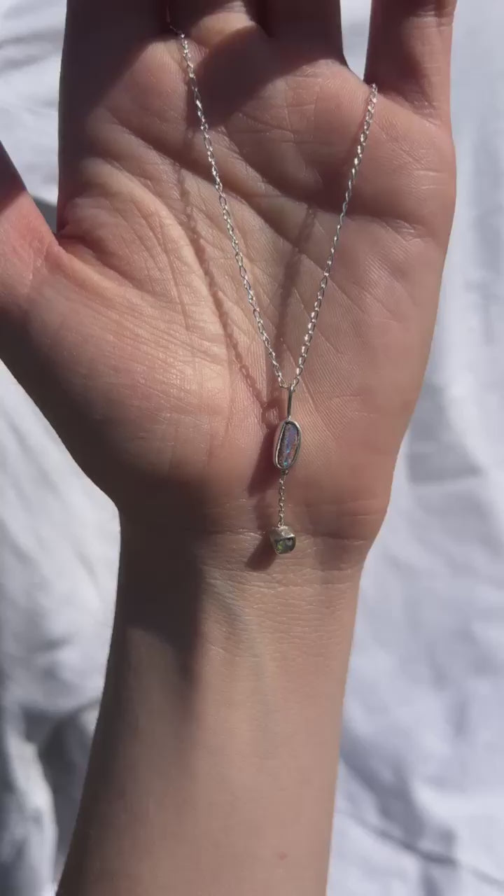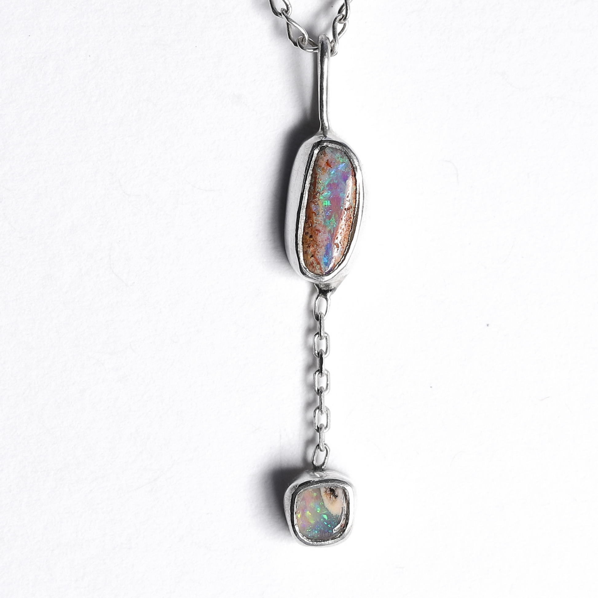 A delicate droplet-style pendant with two spectacular Australian pipe opals.